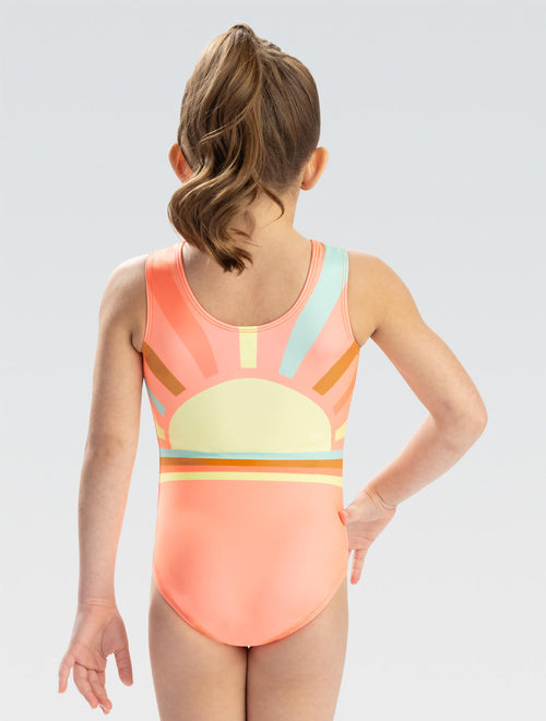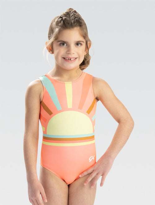 Let your young gymnast glow with warmth and joy in the GKids Golden Hour Tank Leotard! Featuring a radiant design inspired by the soft hues of sunset, with cheerful rays of yellow, mint, and coral bursting from a sunny center, this leotard brings a touch of sunshine to every practice and performance. Perfect for gymnastics, dance, or any activity where they want to shine, the Golden Hour Leotard is sure to brighten their every move!Limited Availability, get it while it lasts!