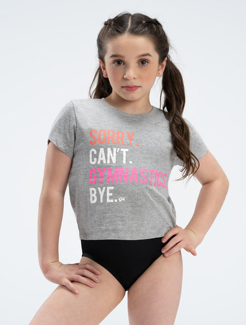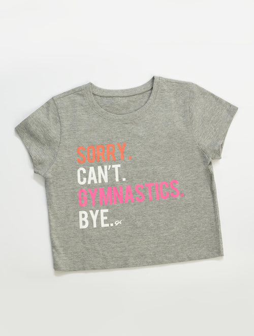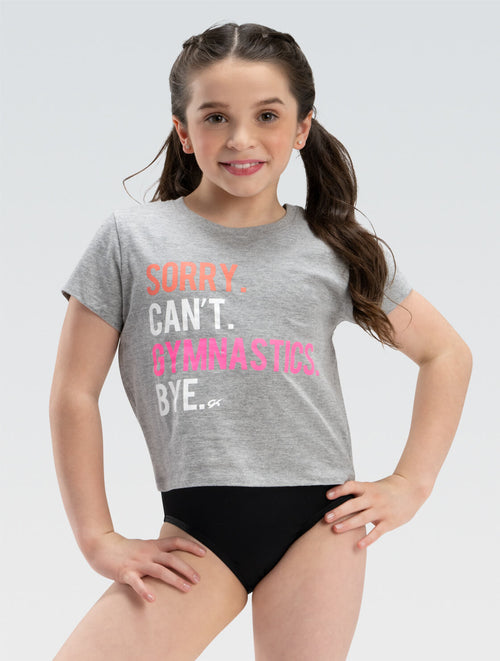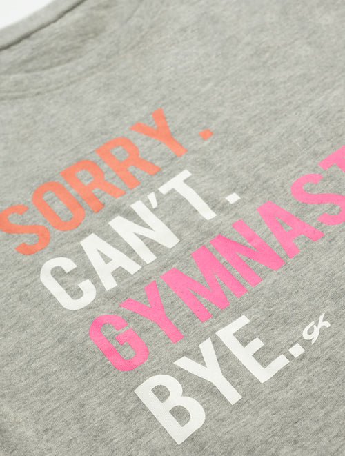 • 'Sorry. Can’t. Gymnastics. Bye.' on front