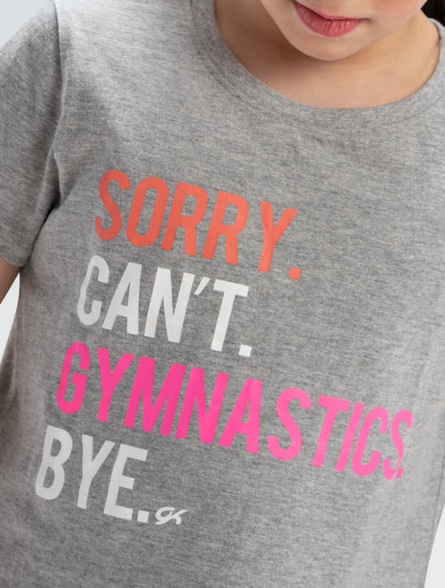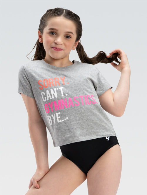 Step into a world where gymnastics is not just a sport, it's a lifestyle. This heather gray tee declares with playful pride, 'Sorry. Can’t. Gymnastics. Bye.' As your day unfolds from practice to the streets, this 'Busy with Gymnastics' T-Shirt, emblazoned with the GK logo, is a nod to your dedication.