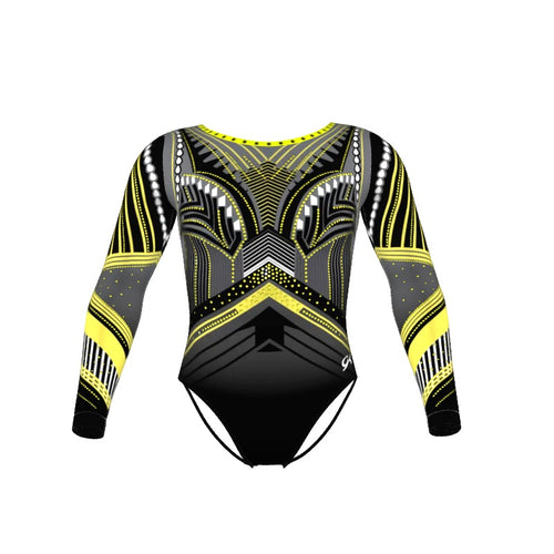 Bring on the edginess. With a leotard like this one, it is hard not to be confident during your routine! Comfortable, durable and customizable to your team needs, this futuristic-like leo is set for show time.