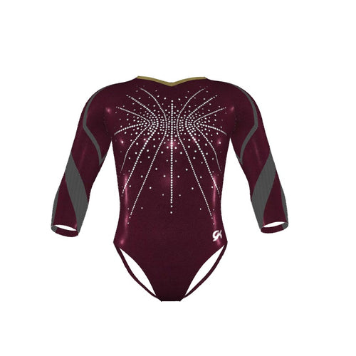 This long sleeve gymnastics leotard is beautifully simple with a hint of flare. Bling it out and keep it subtle. Either way, you are bound to remain confident and classy all competition long.